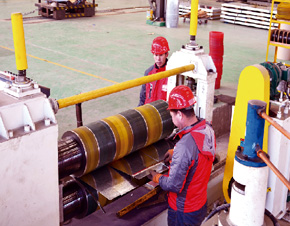| 我司縱剪設(shè)備為國(guó)內(nèi)領(lǐng)先的的雙縱剪交換機(jī)組,加工精度高,速度快,效率高。且縱剪刀軸采用42CrMo鍛鋼,整體調(diào)質(zhì),表面淬火,精磨,電鍍工藝,高精度刀軸保證所切 板材寬度精確(0.05mm~0.12mm,視板厚), 毛刺細(xì)微( 0.03mm~板厚3%,視板厚度而定)。 |